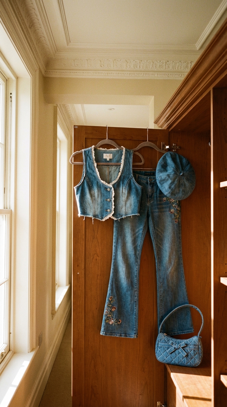 Indigo Whimsy: Double Denim Coquette Vests & Flare Jeans | HeartIn