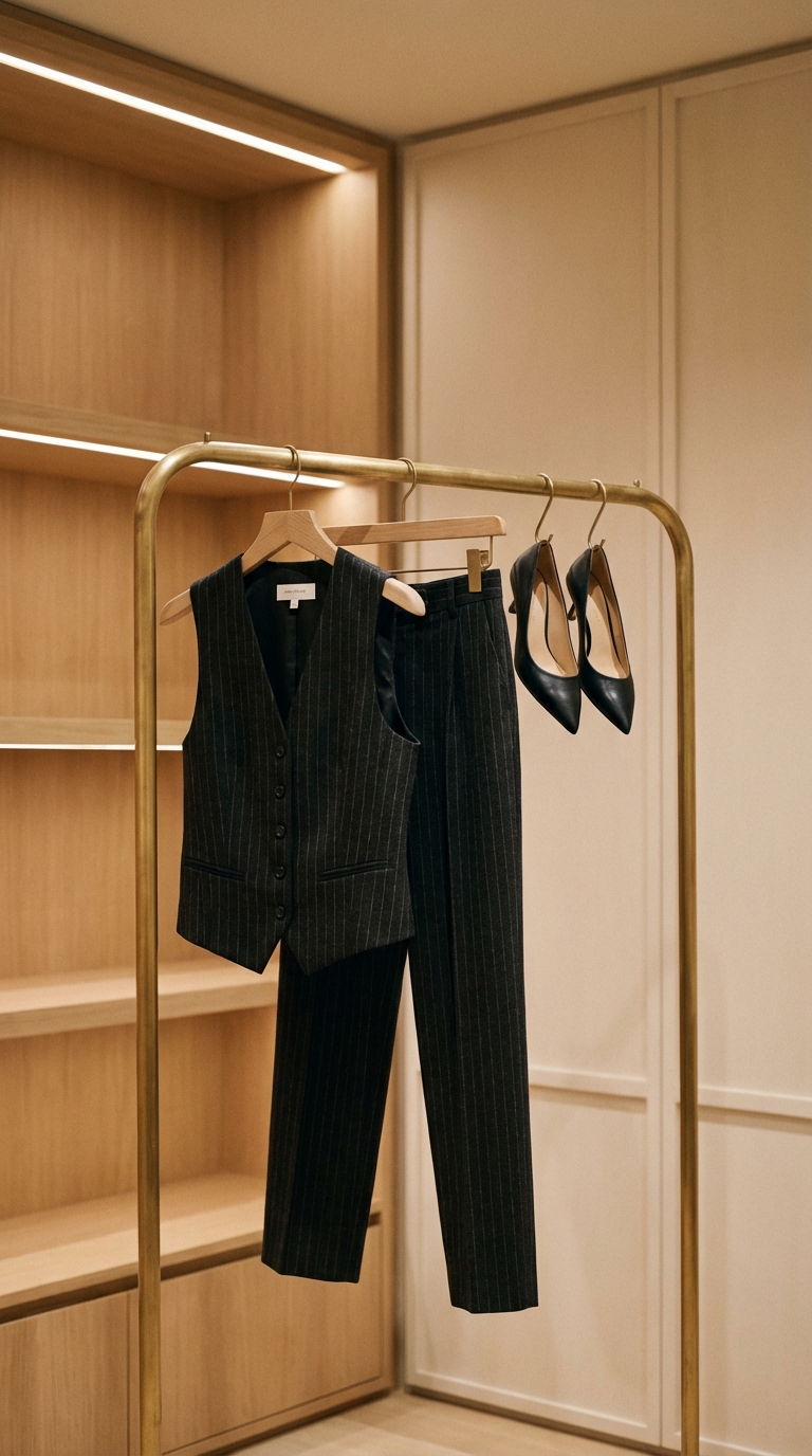 Linear Grace: 90s Corporate Pinstripe Vests & Trousers | HeartIn