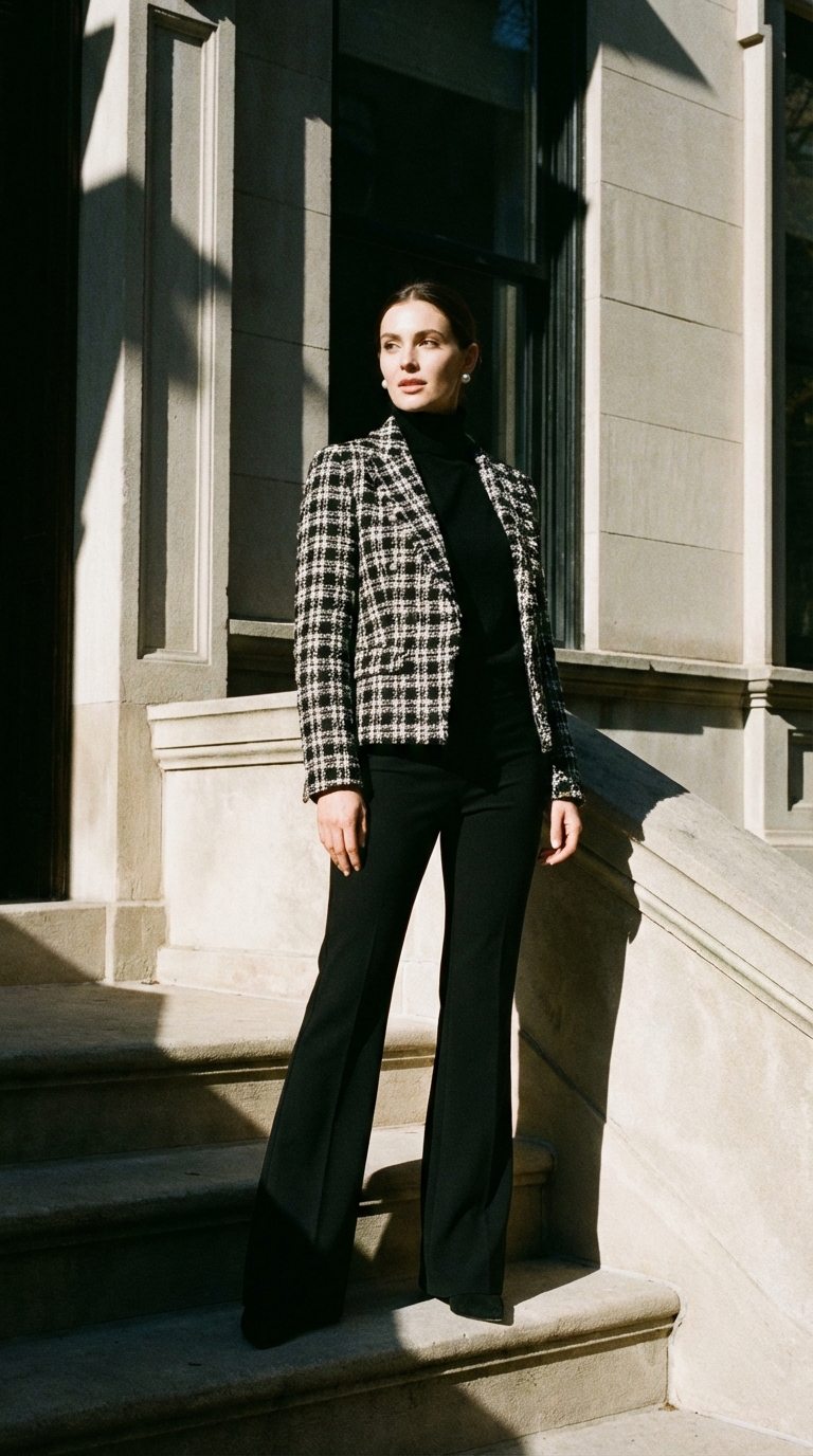 Park Avenue Noir: Bouclé Jackets & Black Turtlenecks | HeartIn
