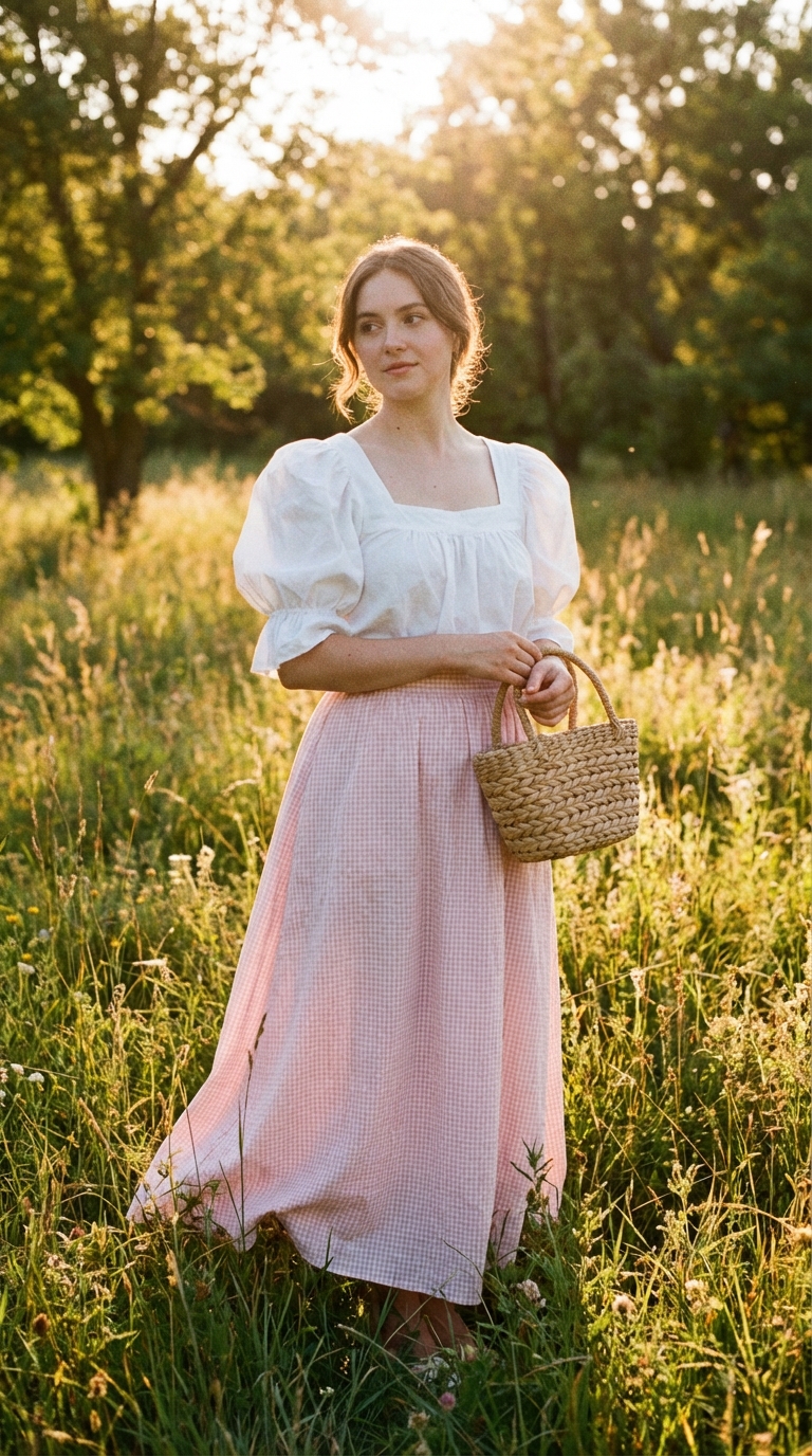 Pastoral Muse: Gingham & Straw Basket Outfits | HeartIn